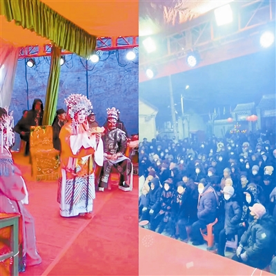 今年春节期间,造甲城镇大王台村业余评剧团演出现场。