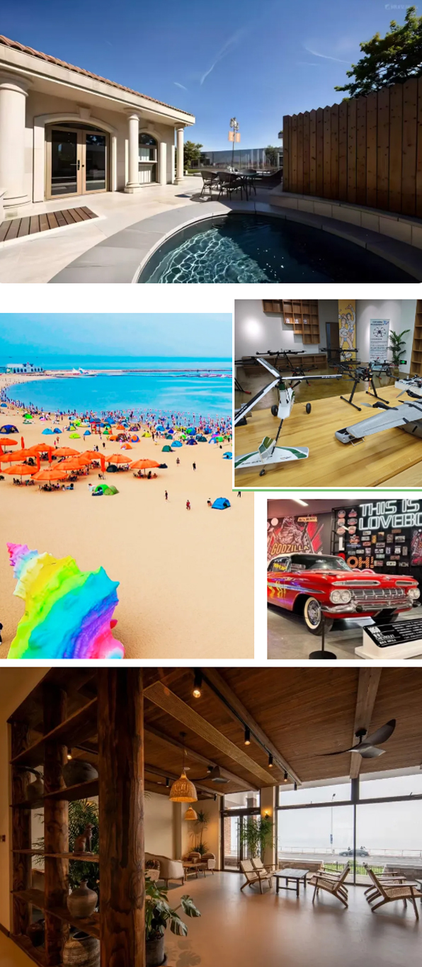 继续向北,东疆湾沙滩景区的金沙碧海瞬间将你拉入海滨度假的松弛感中,若是天气晴好,还能在沙滩上邂逅一场浪漫的日出。紧邻沙滩的建国熹上度假酒店和水木云锦民宿,建筑风格别具一格,是途中不可错过的留宿地。旁边的理想海商圈,更是人文艺术的独特体验地,东疆传统经典车文化艺术中心、紫园餐厅、无人机展示中心等,展示了东疆独特的优雅与艺术底蕴。