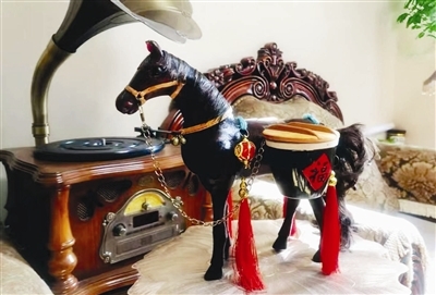 河北区非物质文化遗产项目“杜氏传统手工木艺”代表性传承人杜铁林,多以车、马、船、桥等历史题材为主,注重融入红色元素,成为传承红色精神的载体。在新春之际,他特意创作了传统木艺作品《马年福到》。作品为一匹身形黝黑的骏马,身披红色节日挂饰,马背驮着写有“福”字的米缸,新春与丰年的美好意象呼之欲出。