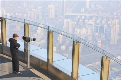 图为游客在69层“云顶漫步”区域游览 记者 吴迪 摄