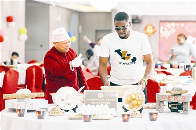 日前,穿芳峪镇和南开大学联合开展“遇见美好 走进蓟州”之“留学生喊你来过年”活动在蓟州举行。来自20多个国家的50余名南开大学留学生,体验品尝非遗美食、制作糖葫芦、写福字、扭秧歌、包饺子、采摘果蔬等系列活动,寻找蓟州的浓浓“年味”。