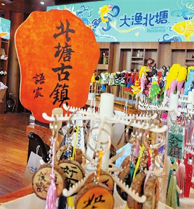 如何丰富古镇商业类型、改善商品同质化?记者了解到,为了强化文化识别度,北塘古镇管理方围绕本地特有的渔盐文化,设计出源于《山海经》中文鳐鱼形象的文旅IP“大渔北塘”。目前开设的“大渔北塘”文创自营小铺,除了售卖盐雕等有北塘特色的文创产品,“大渔北塘”专属的文创产品也在策划、设计中。