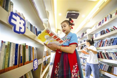 节日期间,“行走的假日图书馆”开进水上公园,市民可以在休闲小憩时品书香。