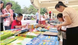 “潮白书市”的图书吸引了很多孩子在童书摊位前驻足。