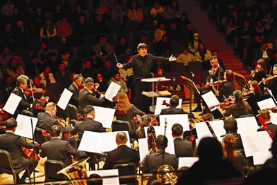 当世纪钟早晨敲响5点的钟声时,海门大桥升起,随着万吨轮从桥下穿过,整个城市迎来新的一天,城际高铁飞驰,市民们乘着各种交通工具赶往各自的工作岗位……昨晚的音乐会,原创作品《向海—天津》第一乐章《城市之光》的首演,成就整场演出的高光时刻。观众从音乐中感受到了天津之晨的具象表达。