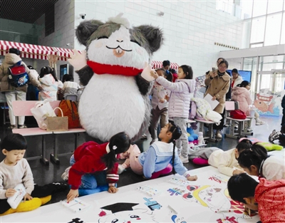 现场最引人关注的环节是天津图书馆微信表情包“圕圕”的首发。据介绍,“圕圕”的原型是一只可爱的丁香色卷毛小豚鼠,其名源自1924年图书馆学家杜定友先生所创的“圕”(音tuǎn)字,意为“图书馆”。豚鼠谐音“屯书”,巧妙地隐喻了图书馆知识宝库的属性;其温顺宁静的天性,也正契合图书馆作为心灵庇护所的特质。昨日,圕圕首次在线下亮相也成为全场焦点。