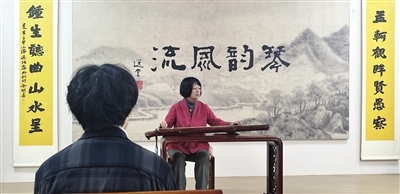 天津音乐学院教授李凤云为动画专业大学生讲解古琴艺术。