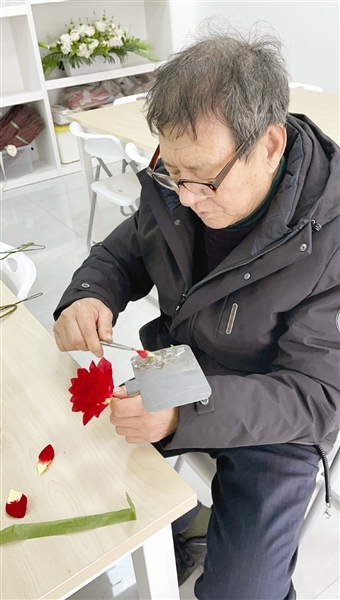 如今,市面上多是产业化的化纤绢花。每当有人质疑机器生产的绢花“没魂儿”时,李秀亭都会为其“发声”:“传统手工和现代绢花本来就是一家子,都是仿真花,只不过是原料和工艺不一样。”有时别人请他去指导,他反倒向厂子里的工人请教:“现在有些新面料,比如磨毛布做花更逼真,这些新东西咱得学,不能守着老手艺不变。”
