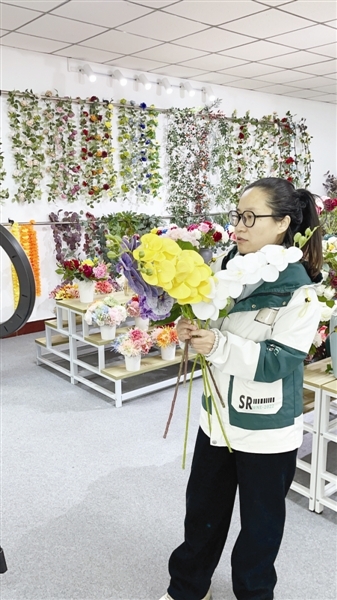 总经理苑广东今年48岁,2010年创业初期,绢花正广泛用于国内的婚庆市场,走货量巨大。但“初出茅庐”的他没扎堆儿这个“赛道”,反倒早早盯上了电商,成了曹子里率先吃电商“螃蟹”的人。“那时候不少人瞧不上我这门路,找人家拿货受了不少白眼,他们觉得对着电脑卖货这事儿不靠谱。”可他咬着牙坚持,把绢花往海外送。“现在倒好,以前看不上电商的,现在都来找我,问能不能把他们的花放我店里卖。”苑广东笑着说。