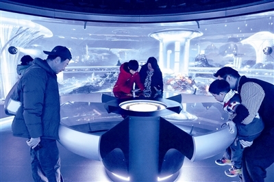 百年之后的海洋会是什么样?人类是否可以真的实现探索深蓝?如果在海底生活会是怎样的一番场景?昨天,经过内测后的国家海洋博物馆(以下简称海博馆)“未来海洋”展厅举行了点映活动,吸引了大批参观者到场体验,记者跟随游客的步伐,来到这座科学推演出的“百年后海底城市”一探究竟。