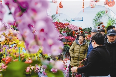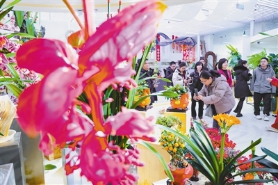 在北京花卉交易中心,“2026家庭园艺嘉年华暨迎春年宵花展”正迎来热潮。各式新品花卉缤纷竞艳,吸引众多市民驻足挑选。往来顾客将盎然的春意与喜庆的年味一同打包带回家。