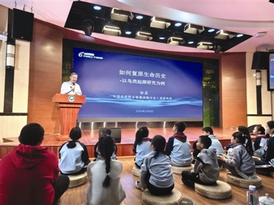 2月8日上午,“科学家走进博物馆”天津自然博物馆科学讲堂首场活动在天津自然博物馆举办。中国科学院院士、中国科学院古脊椎动物与古人类研究所所长徐星作为首场活动特邀主讲人,莅临现场作专题科普讲座。