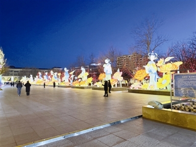 夜幕深沉,灯光秀震撼登场,让游客置身于“活起来”的吉祥年画中。