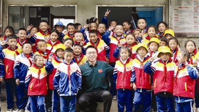 王建新在桑多乡小学课后师生合影