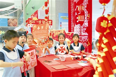 活动以“稚手匠心承古韵,非遗节日薪火传”为主题。活动现场“鼓舞少年”敲响铿锵鼓点,手持非遗“梯灯”的孩童在展览大厅穿梭。本次展览共展出非遗主题儿童作品200余件,160多名“非遗小匠”在老师的带领下现场沉浸式体验中国传统节日中非遗文化的独特魅力。“春节剪纸区”红纸翻飞,孩子们剪出灵动的生肖图案;“端午香囊区”艾草飘香,非遗竹编小船,传递着劳动人民的辛劳与智慧;“中秋宫灯区”,彩纸化作一盏盏精巧的灯笼,“诉说”着人们对团圆的期盼……非遗小讲解员身着传统服饰,向观众讲述“七夕乞巧”“重阳登高”的故事。