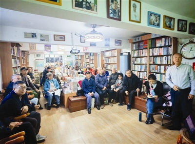 中国近现代史史料学学会理事王靖(右一)在蔷之屏书店举办文化讲座