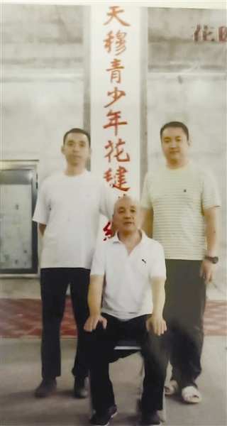 左图:2015年天穆青少年花毽暑期培训结业,穆怀良的父亲穆氏花毽第三代传承人穆瑞宽(中),穆怀良(右),穆怀良弟弟穆怀杰(左)