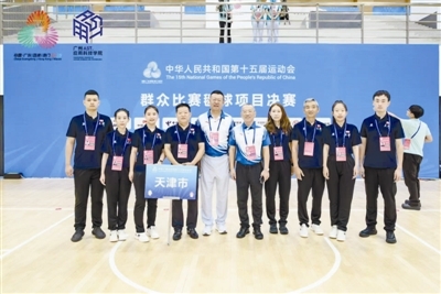 上图:花毽队代表天津市参加第十五届全运会毽球项目决赛