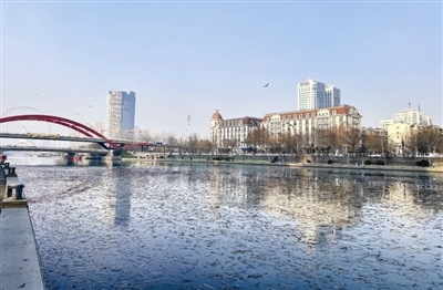 近日,海河迎来今冬初冰,片片浮冰在阳光下熠熠生辉,为津城增添了一抹静谧的冬日韵味。