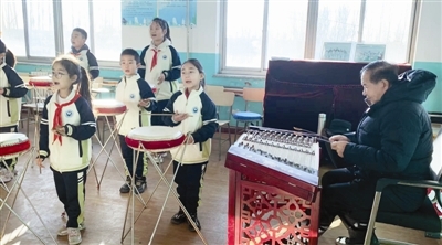“从小立下爱国志,雷锋精神代代传。”学生们一曲歌毕,邱金鹏放下扬琴槌,“杜家庄小学是京东大鼓传承基地校之一,传承班里的孩子们经常参加各种展演。”元旦前,宝坻区每年一次的京东大鼓基地巡演,4所传承校的学生与家长齐聚一堂,带来了精彩纷呈的节目。“最后一个节目,是我临时提议,让5个独唱的学生和家长共唱一曲歌咏宝坻的曲目,家长们字正腔圆,博得满堂彩!”邱金鹏欣慰地说:“宝坻人唱京东大鼓,有方言优势更有百年积淀,传承下去我有信心。”