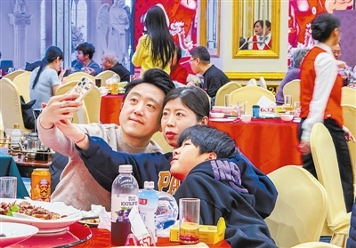 春节期间,本市餐饮市场火爆,不少市民选择走进餐厅,与家人欢聚一堂。