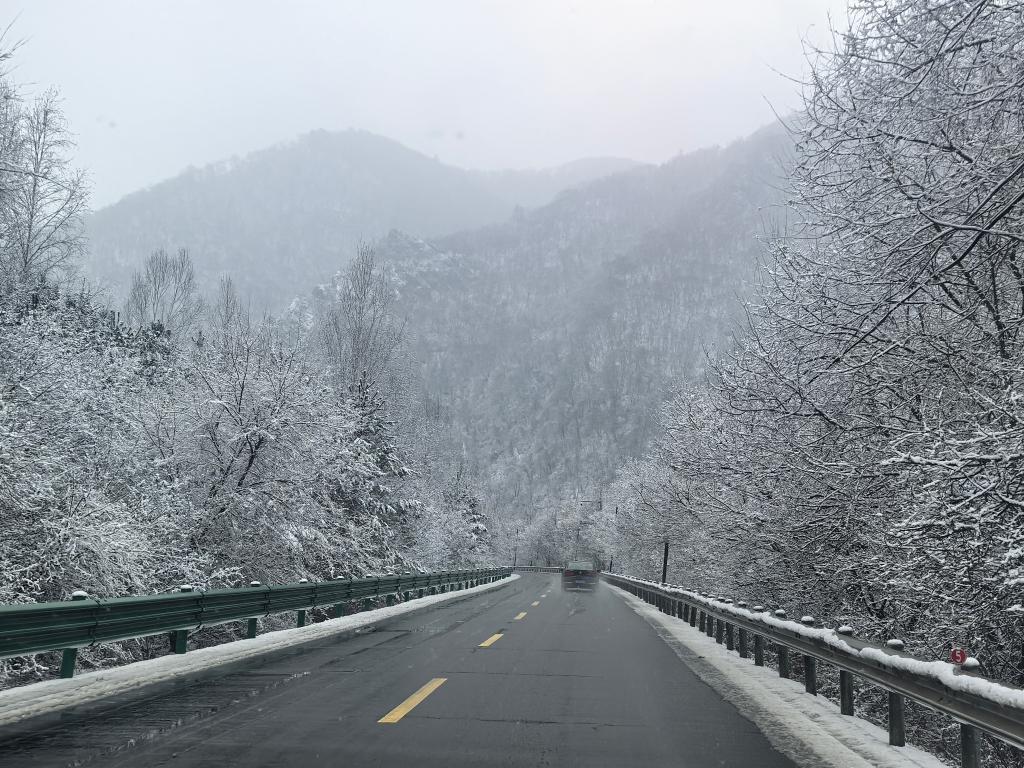 G331沿边开放旅游大通道吉林段,近日的一场降雪让天地间变成水墨画。(11月27日摄)新华社记者 孙鹏程 摄
