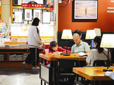 家长带着孩子在中北镇一家书店内阅读。 新华社记者 李然 摄