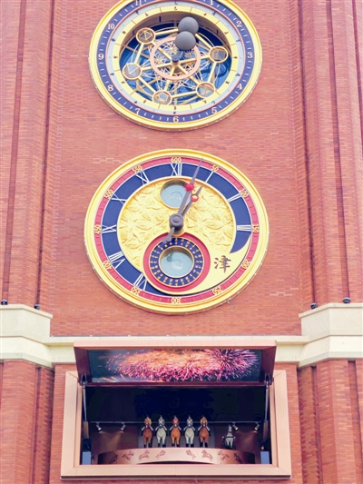 近日,天津五大道公园钟楼的整点“跑马”报时装置成市民游客打卡热点。该装置位于69.6米高的钟楼之上,在每日特定整点时刻,钟面会展开小型舞台,跑马小人与小马车环绕巡游约四分钟,重现老天津跑马场记忆。